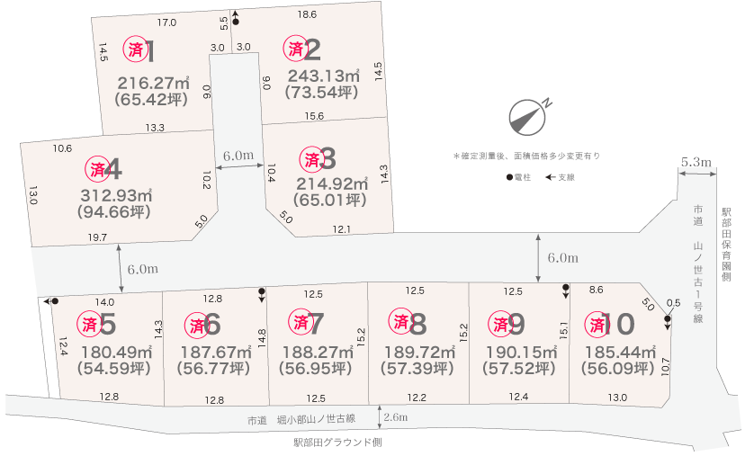 面積:180.49㎡(54.59坪)〜312.93㎡(94.66坪)